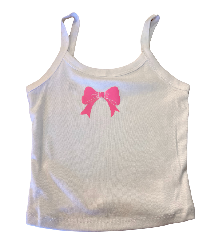 White Tank Top with Pink Bow Graphic – Cute & Trendy