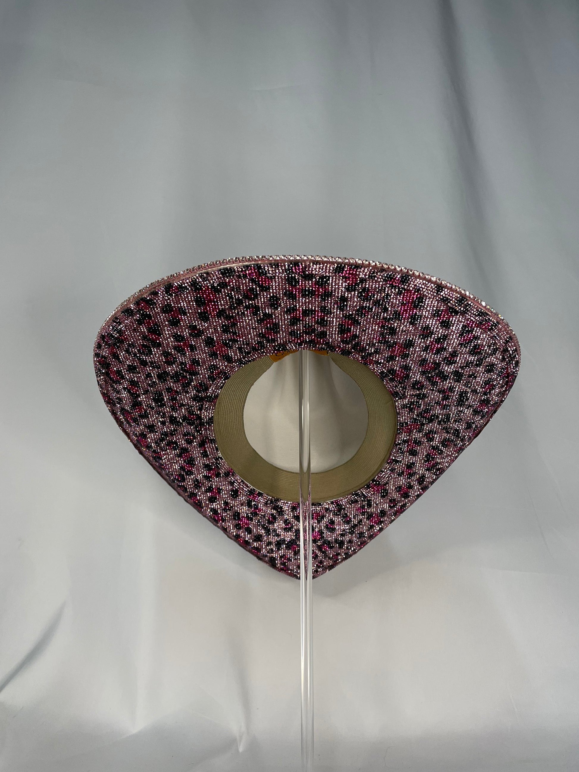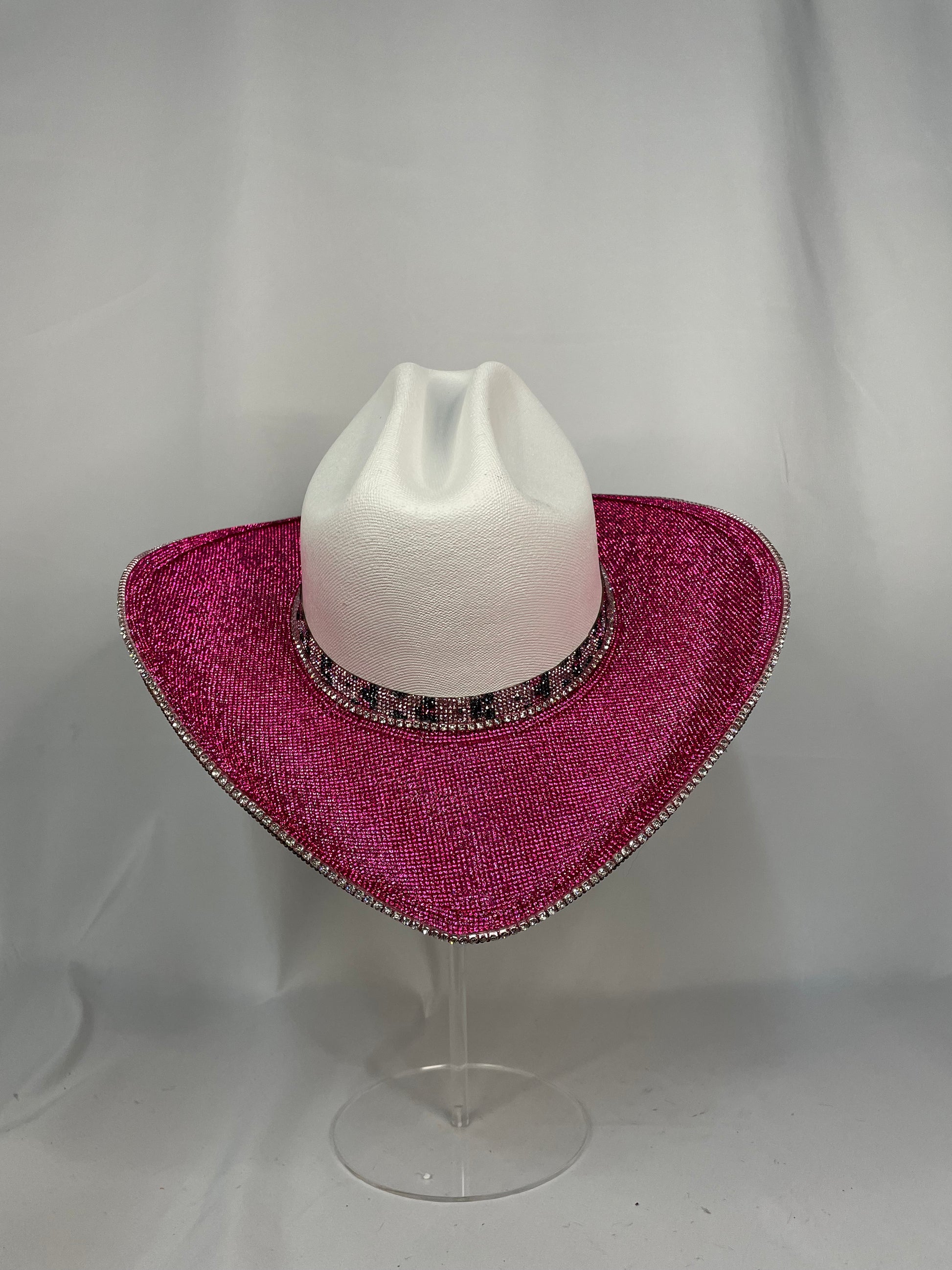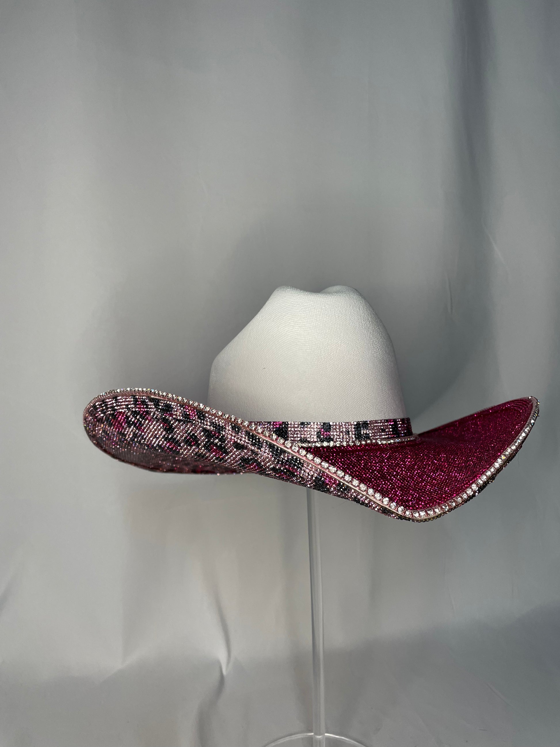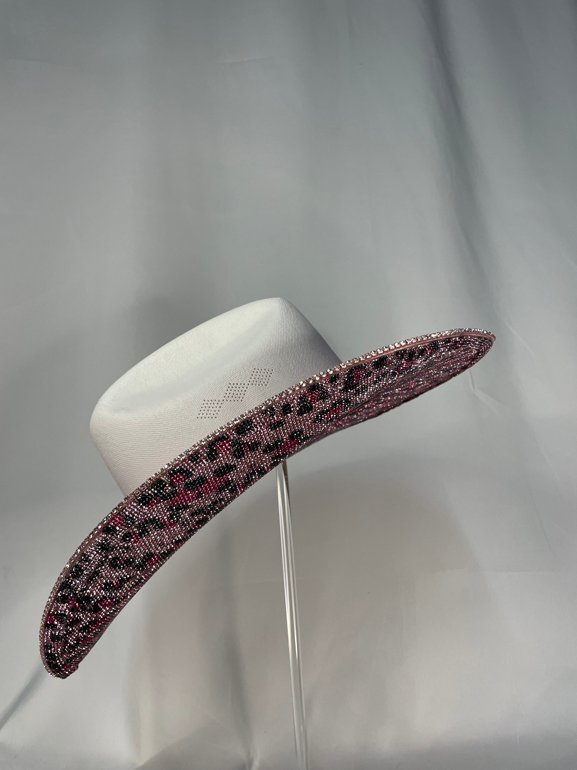 Custom Pink Cheetah Rhinestone Tassel Cowgirl Hat, Silver Rhinestone, White Bride Cowgirl, Rhinestone Tassel, Country Hat, Bridal Cowgirl Hat, Wedding Gift, Gifts for Her, Bride, Rhinestone Cowgirl, Nashville Bachelorette, Nashville Rhinestone Cowgirl