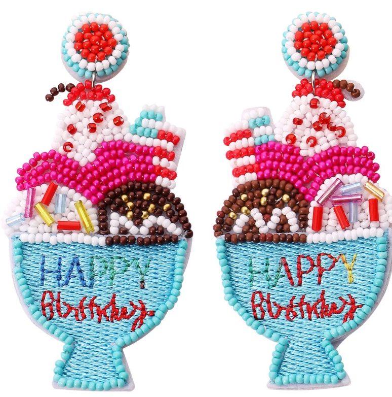 Happy Birthday Cake Earrings - A cute accessory for the birthday girl who has everything. Planning a birthday in Nashville, Austin or Scottsdale? Gift this cute earring to your birthday girl! It's made of plastic beads that dangle at the perfect spot off of your ear!