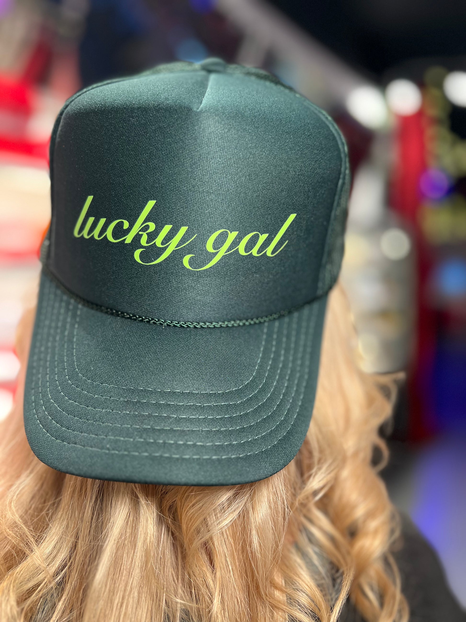 Bring some good vibes wherever you go with our Lucky Gal trucker hat! This stylish and fun cap features a green text , and a breathable mesh back for all-day comfort. Perfect for St. Patrick’s Day, outdoor adventures, or just adding a little extra luck to your day.